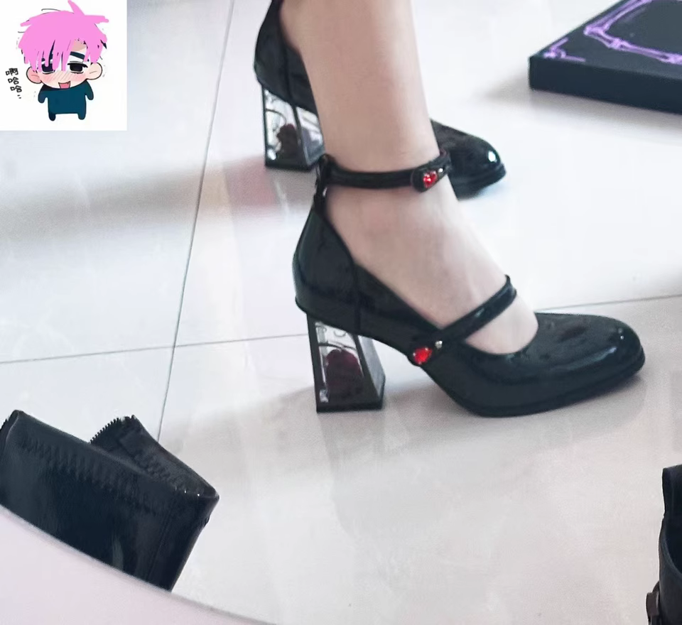 The original 2022 Gothic Mary Jane design by artist '婴儿车是我的'—now stolen by fast fashion brands. Featuring 8cm sculpted heels with cloud-soft synthetic leather and a locking ankle strap for all-night wear. This is not another drop-shipped replica—it's the cult-favorite shoe that started the trend.